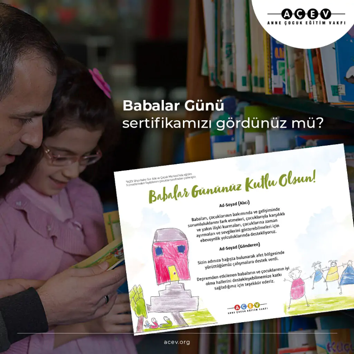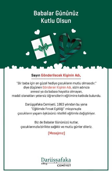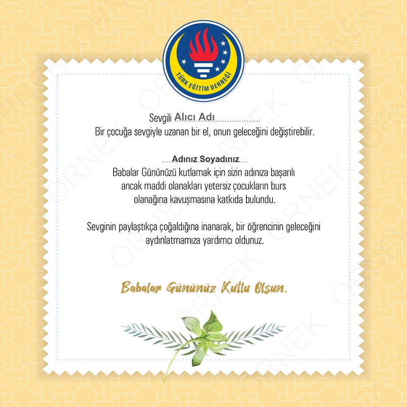 Türk Eğitim Derneği’ne bağış yaparak babanız için eğitimde fırsat eşitliği sağlanmasına katkıda bulunabilirsiniz.