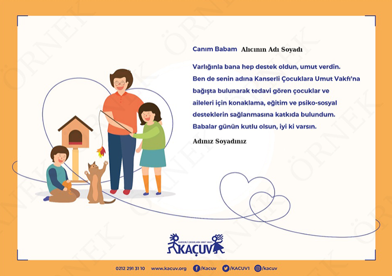 Kanser tedavisi gören çocukların tedavisine destek olarak babanıza sertifika hediye edebilirsiniz.