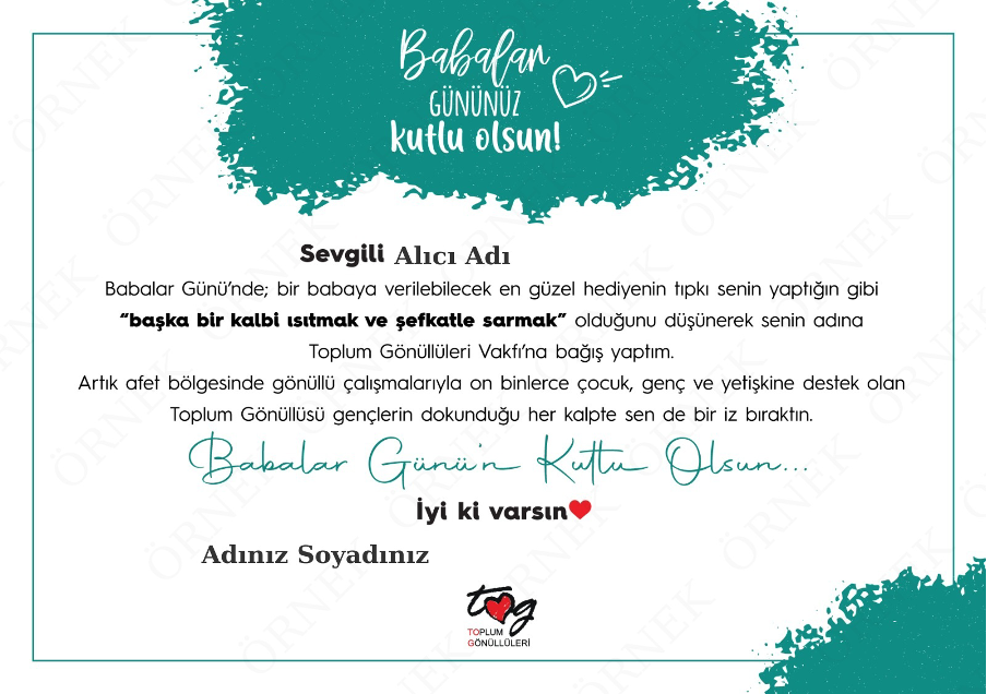 Babanız adına TOG’a bağış yaparak afet bölgesindeki gönüllü çalışmalara katkı sağlayabilirsiniz.