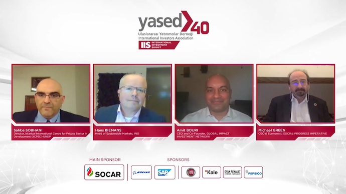 Sürdürülebilir kalkınma hedeflerinin yatırım tarzını değiştirmeden gerçekleştirilemeyeceğini ifade eden Küresel Etki Yatırım Ağı (The GIIN) CEO’su Amit Bouri, şunları aktardı: “Operasyonlarımı nasıl sürdürülebilir hale getirebilirim ve şirketin verdiği zararı nasıl azaltabilirim soruları var. Burada çok fazla aktivite ortaya çıkmaya başladı. Hem zarar üzerine hem de riskin azaltılması üzerine çalışmalar var. Çevresel, sosyal ve yönetişimsel (ESG) konuları risk konusu ile bağdaştıran farklı stratejiler geliştirilmeye başlandı. Önemli bir nokta da sürdürülebilir kalkınma hedeflerini globale taşıma. Mikro alanda yapılan belli projeler var ama bütün bunlar globalde nasıl birbirine bağlanabilir sorusu var bizim için. Sürdürülebilirlik büyümekte olan bir pazar. 715 milyar dolarlık bir pazardan bahsediyoruz. Etki yatırımı çok farklı sektörlerde büyüyor. Bunun daha yaygın hale geleceğini düşünüyorum. Covid bunu daha da hızlandırdı. Artık sistemin endüstriler ile birlikte değişmesi gerekiyor. Bu krizden ölçülebilir etkileri yaratarak çıkmamız gerekiyor. Burada da daha sürdürülebilir bir dünya yaratmamız için yatırımların önemli bir rolü var.”
