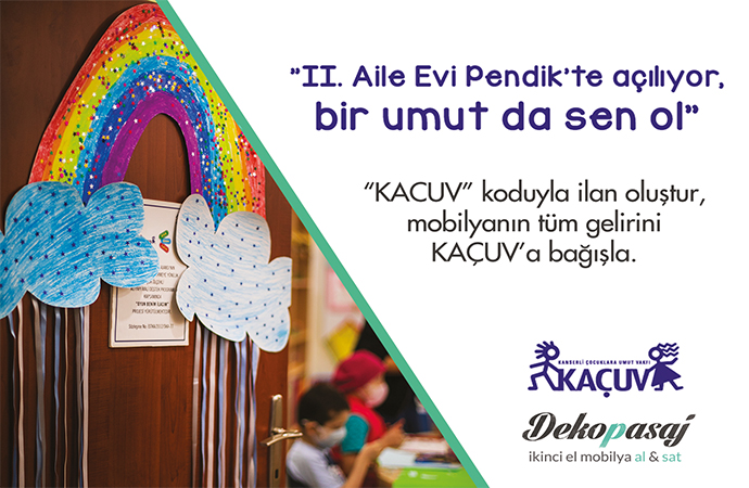 İkinci el mobilyaların en kolay ve keyifli yoldan el değiştirmesini amaçlayan Dekopasaj, şimdi de mobilyalarınızı satarken Kanserli Çocuklara Umut Vakfı’na (KAÇUV) destek olmanızı sağlıyor. 2000 yılında, çocukları tedavi görmekte olan aileler ile hekimlerinin bir araya gelmeleriyle kurulan Kanserli Çocuklara Umut Vakfı, maddi sorunları nedeniyle tedavileri aksama riski taşıyan çocukların tedavilerinin sürekliliğini sağlıyor. Ayrıca kanser ile mücadelede önemli bir gereksinim olan psikolojik destek ve çocuk psikolojisine uygun tedavi ortamının yaratılmasına, hastaların sosyal ihtiyaçlarına da destek veriyor. Dekopasaj, bu anlamlı iş birliğiyle KAÇUV’un Aile Evi inşasına yardımcı olmayı amaçlıyor. Aile Evi çocuklarının tedavisi için şehir dışından İstanbul’a gelmiş, maddi açıdan dezavantajlı ailelere ücretsiz konaklama imkânı sağlayan ve ailelerin gıda, temizlik, sosyal alan, mutfak ve kısmi giyim ihtiyaçlarını karşılayan bir merkez olarak konumlandırılıyor.