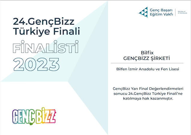 Genç Başarı Vakfı tarafından her yıl “GençBizz” adıyla düzenlenen yarışmaya Bilfen İzmir Lisesi öğrencileri de kurdukları Bil-fix şirketiyle 5.kez katıldılar. Her yıl önemli derecelerle yarışmadan ayrılan öğrenciler bu şirket ile yarışma kapsamında Türkiye’de kurulan 650 şirket içinden ilk 15’e girip final şansı yakaladı. Bilfen İzmir Fen Lisesi öğrencileri, bu yıl Türkiye’de yapılacak Avrupa finallerinde temsil etmek için yarışacaklar.