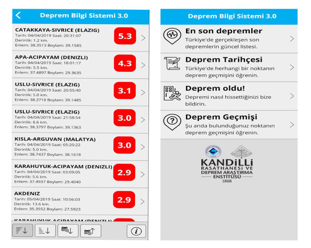 Kandilli Rasathanesi’nin geliştirdiği bir uygulama olan Deprem Bilgi Sistem 3.0, Türkiye ve komşu ülkelerde gerçekleşen depremler hakkında kullanıcıları depremin şiddeti, konumu ve tarihi konusunda bilgilendiriyor.