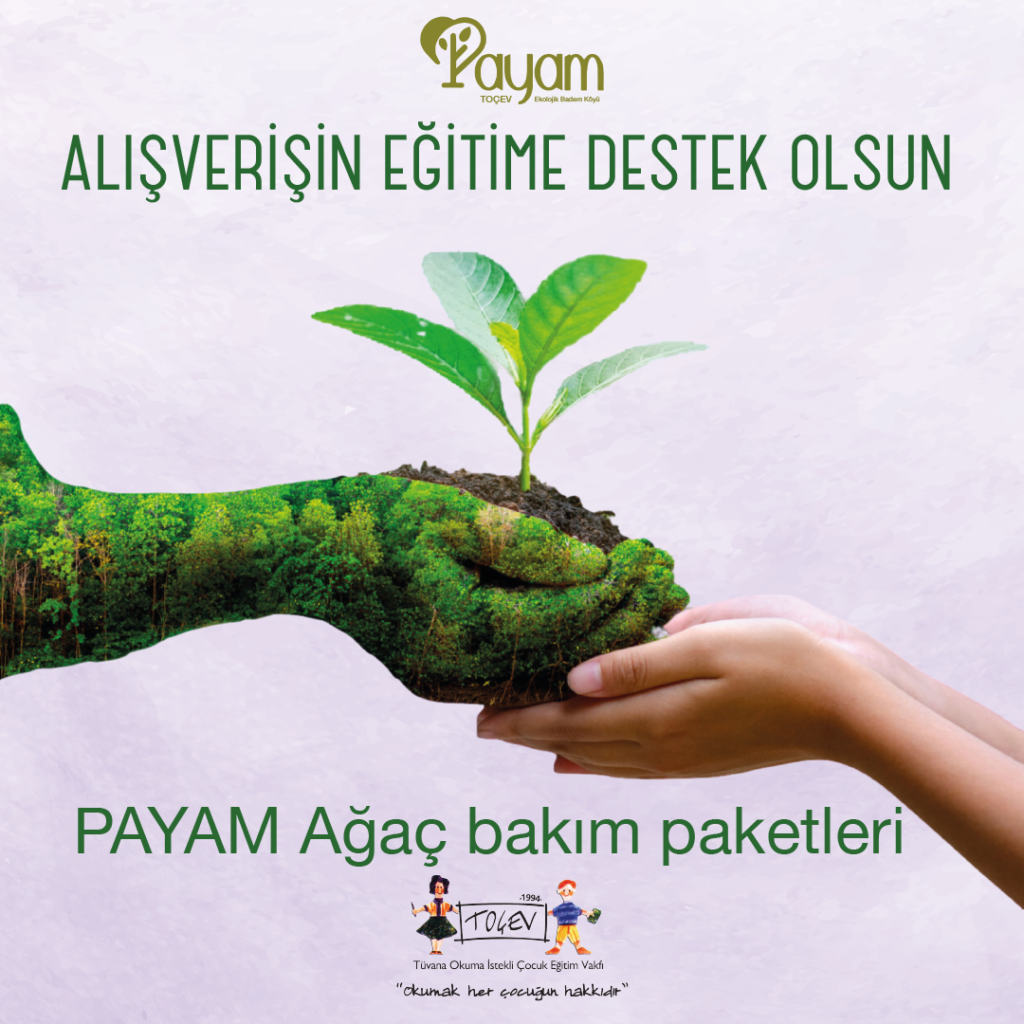 Çocukların sorunlarına akılcı ve faydalı çözümler getiren TOÇEV’in sürdürülebilir kaynak yaratmayı amaçlayan Payam köyündeki ağaçlar ürün verip kendi içinde bütçe dengesi oluşturuncaya dek ihtiyaç duyduğu bakım, fidan yenileme, aşılama, besleme gibi işlemler için https://www.tocevdukkan.com/agac-bakim-paketi üzerinden detaylı bilgi alınabilir ve destek olunabilir.