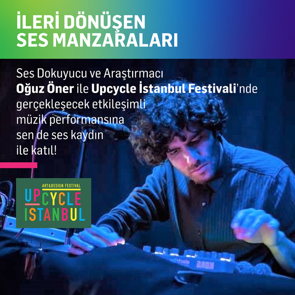 Sürdürülebilirlik konusunda farkındalık yaratan sanat eserlerine, atıklara ikinci şans veren tasarımlara ve çeşitli etkinliklere ev sahipliği yapacak olan Upcycle İstanbul Art and Design Festival’in birinci günü olan 16 Eylül’de, ses dokuyucu ve araştırmacı Dr. Oğuz Öner yürütücülüğünde etkileşimli “İleri Dönüşen Ses Manzaraları” etkinliği gerçekleşecek. Bu kapsamda ziyaretçiler 4 Eylül saat 23:59’a kadar upcycle.istanbul@kecievents.com adresine gönderdikleri ses kaydıyla etkinlikte yer alabilecek. Seçilen ses kayıtları canlı bir müzik performansına dönüşecek.